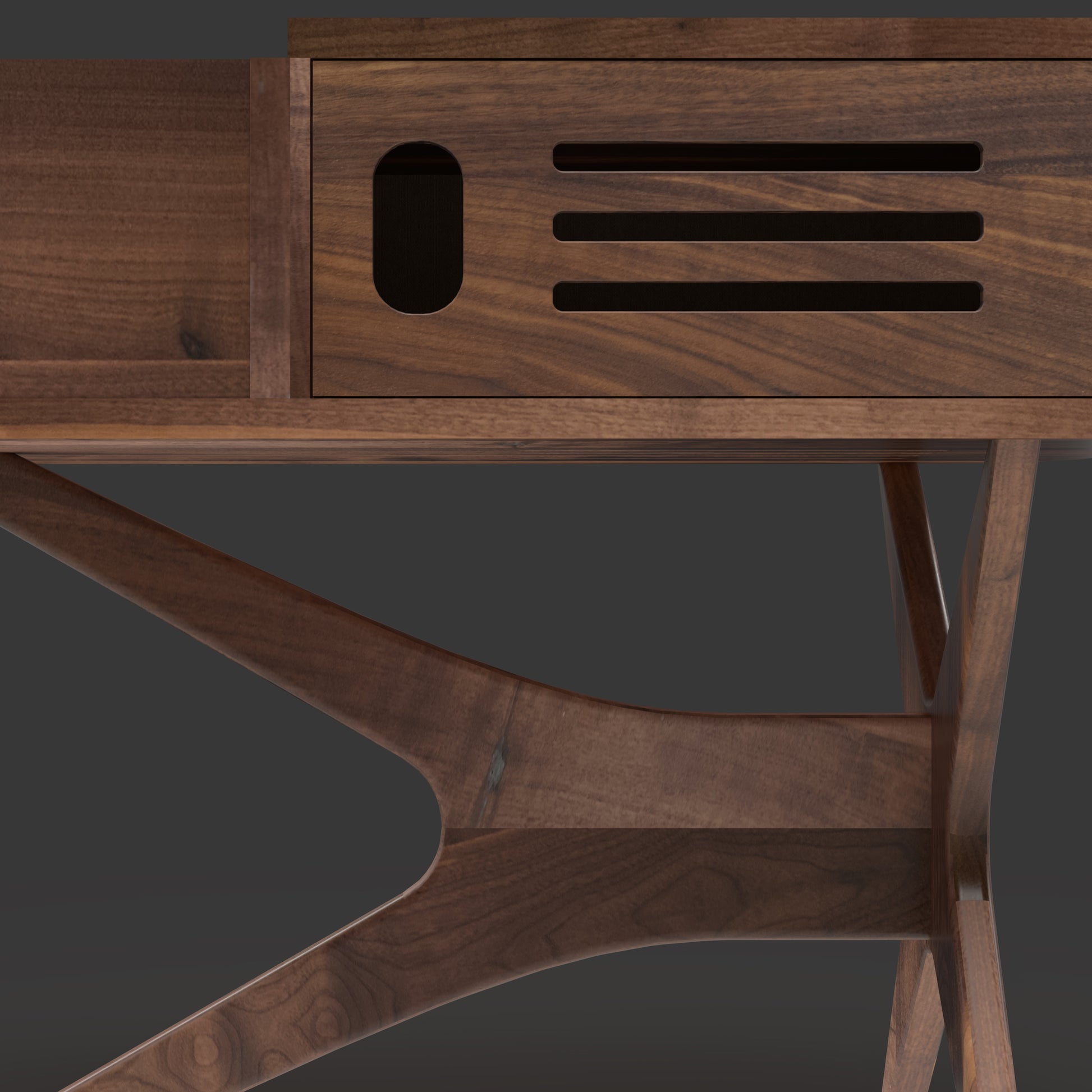 Jean-Marie for Sonos with Modern Vinyl Storage is our mid-century record player stand built for vinyl + streaming—handmade in Québec from locally sourced solid black walnut.