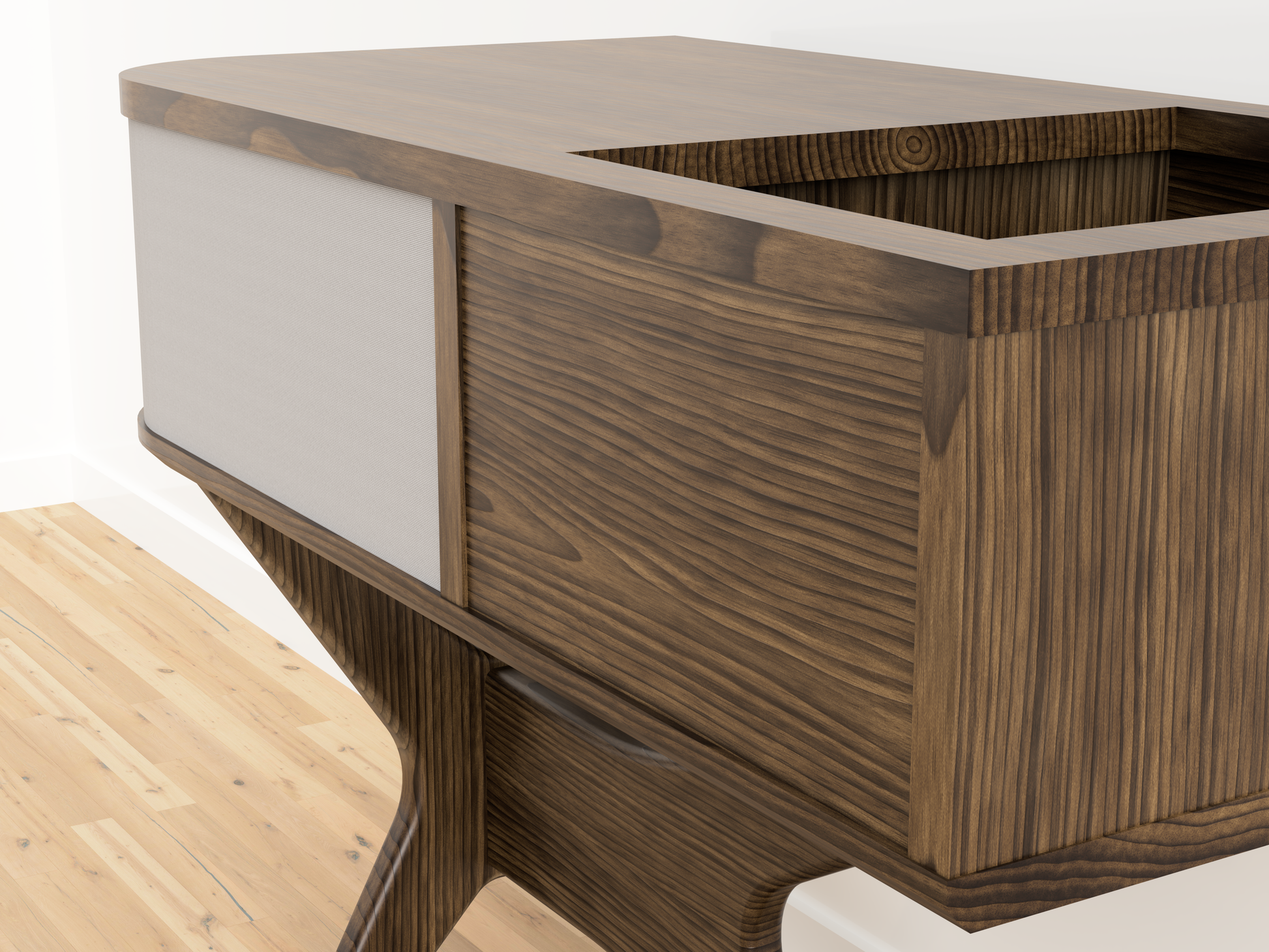 Introducing Jean-Marie, a mid-century turntable stand made of locally sourced solid black walnut and white oak.