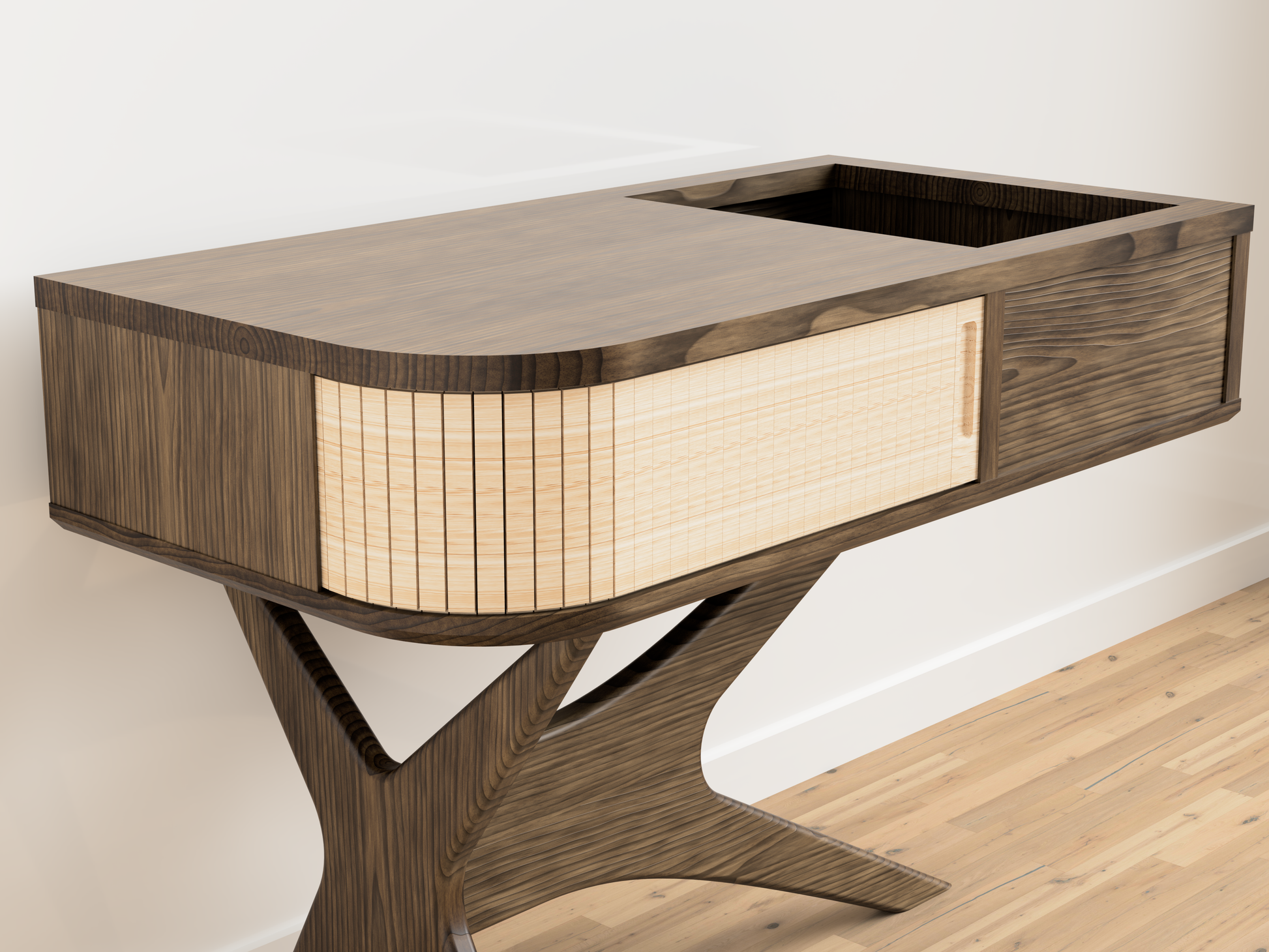 Introducing Jean-Marie, a mid-century turntable stand made of locally sourced solid black walnut and white oak.